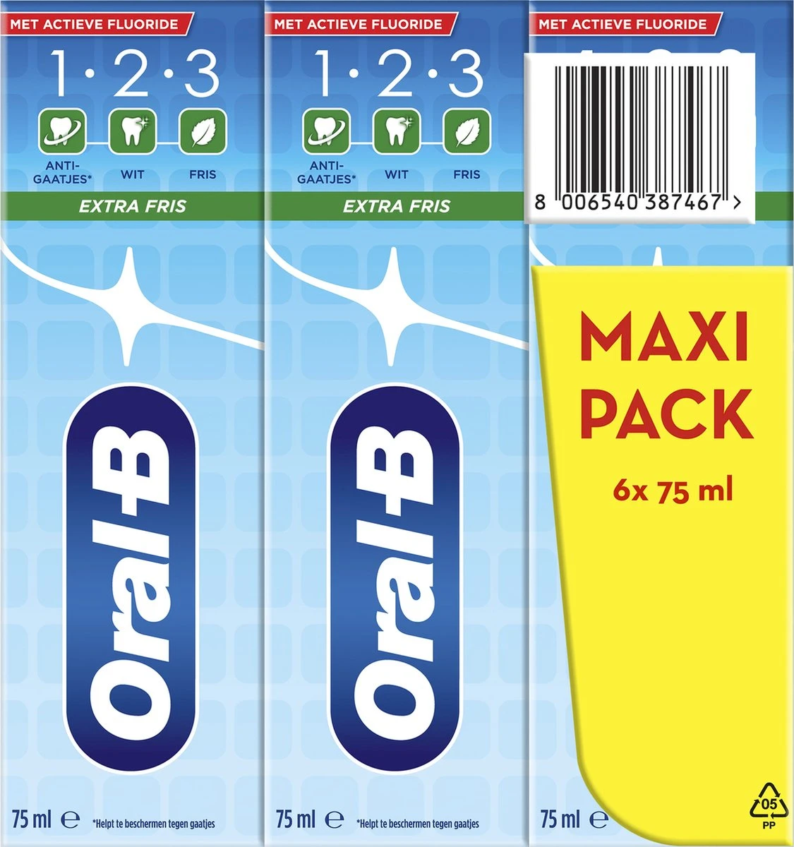Oral-B 1.2.3 tandpasta is ideaal voor het hele gezin en biedt bescherming tegen gaatjes en voorkomt tandbederf.