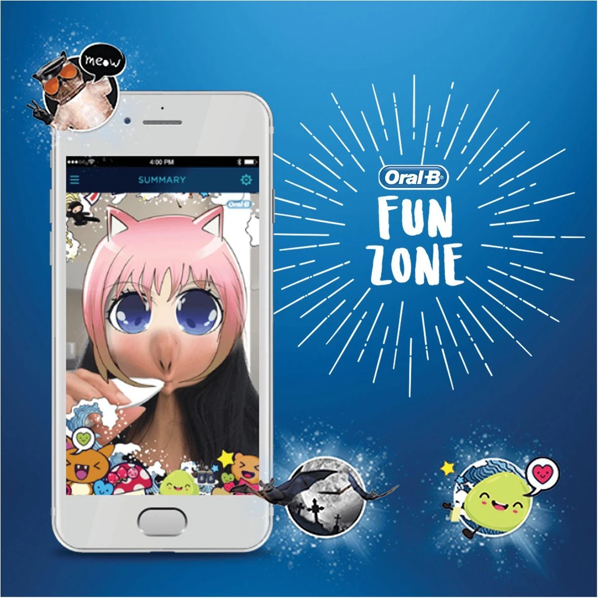 De Oral-B FunZone App is een speelse manier om kinderen te helpen hun dagelijkse mondverzorgingsgewoonten te verbeteren. Ze kunnen hun poetsvoortgang volgen met realtime feedback en leuke fotofilters ontgrendelen als een beloning door twee minuten lang te poetsen, zoals aanbevolen door tandartsen. Beschikbare fotofilterthema’s zijn bijvoorbeeld afbeeldingen van schattige dieren, leuke anime, snoezige katten en griezelige spookhuizen.